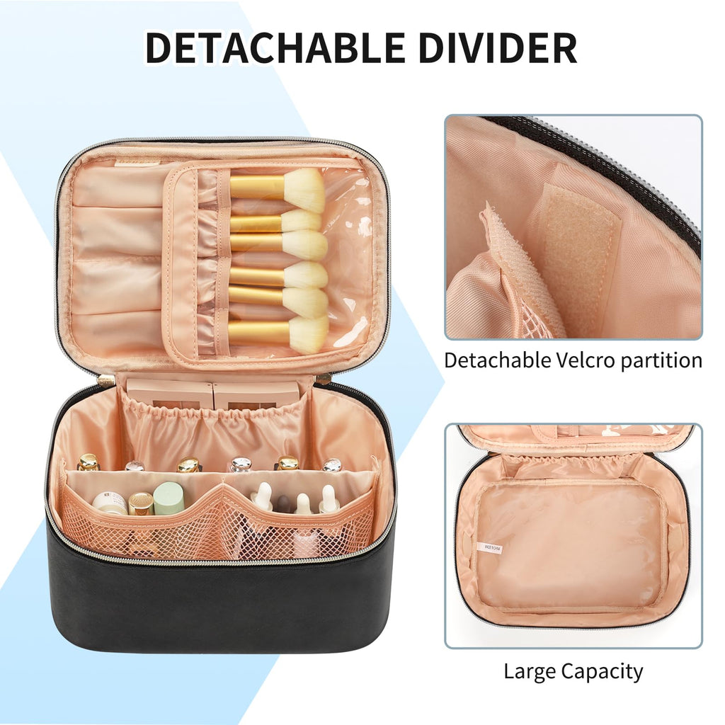 - Separate Brushes Compartment - Travel makeup bag comes with a separate space to hold your brushes and protect them from dust. Good travel makeup bags for women