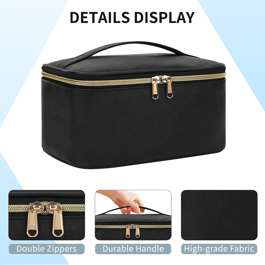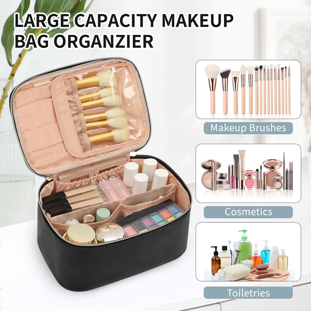 OCHEAL Makeup Bag, Portable Cosmetic Bag, Large Capacity Travel Makeup Case Organizer, Black For Women Toiletry Bag for Girls Traveling With Handle and Divider