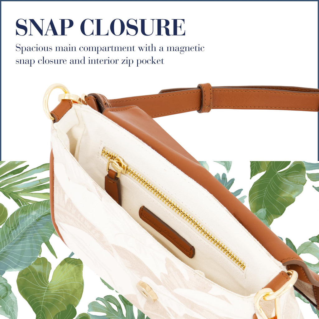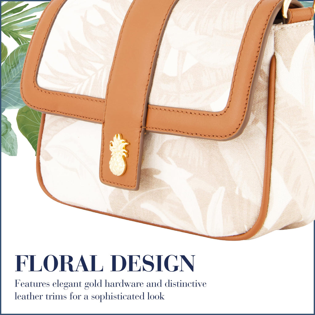 Tommy Bahama Women's Crossbody Bag Purse, Floral Canvas Flap Small Shoulder Handbag with Adjustable Strap and Leather Trim, Multi