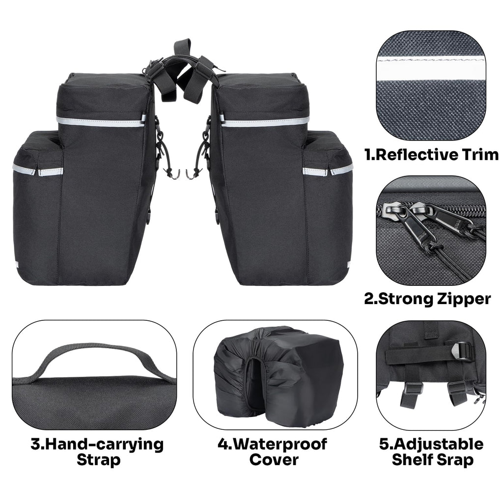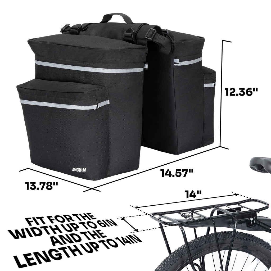 ANCHOM Bike Panniers, 34L Upgraded Water Resistant Saddle Bags for Bicycle Rear Racks, Bike Accessories for Mountain, Road & Electric Bikes, Bike Bag for Commuting Black
