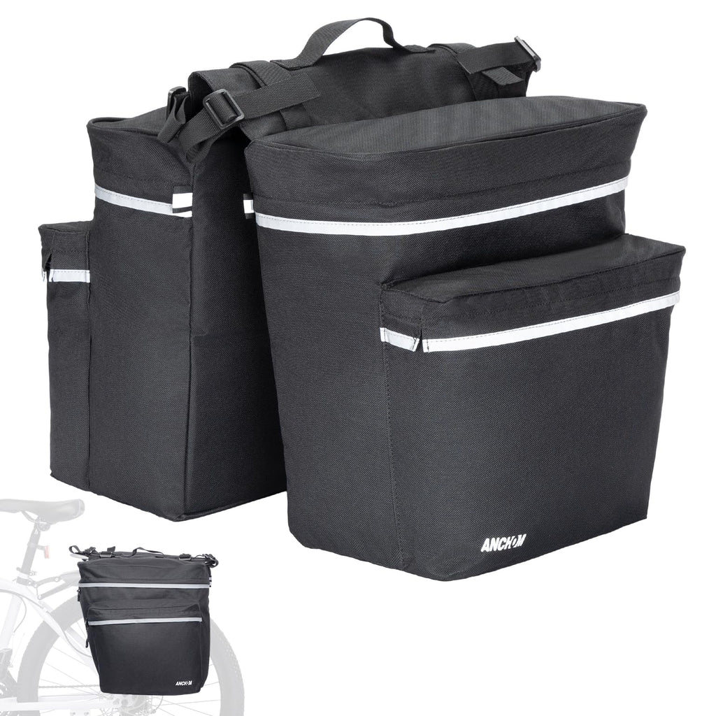 Brand: ANCHOMColor: BlackFeatures: Enhanced Rain Protection & Durability: Crafted from durable 600D Oxford fabric with a water-resistant PVC layer, the ANCHOM bike bag comes with an additional rain cover to shield your belongings during unexpected downpours and humid conditions Spacious Storage: With a total capacity of up to 34L (17L...