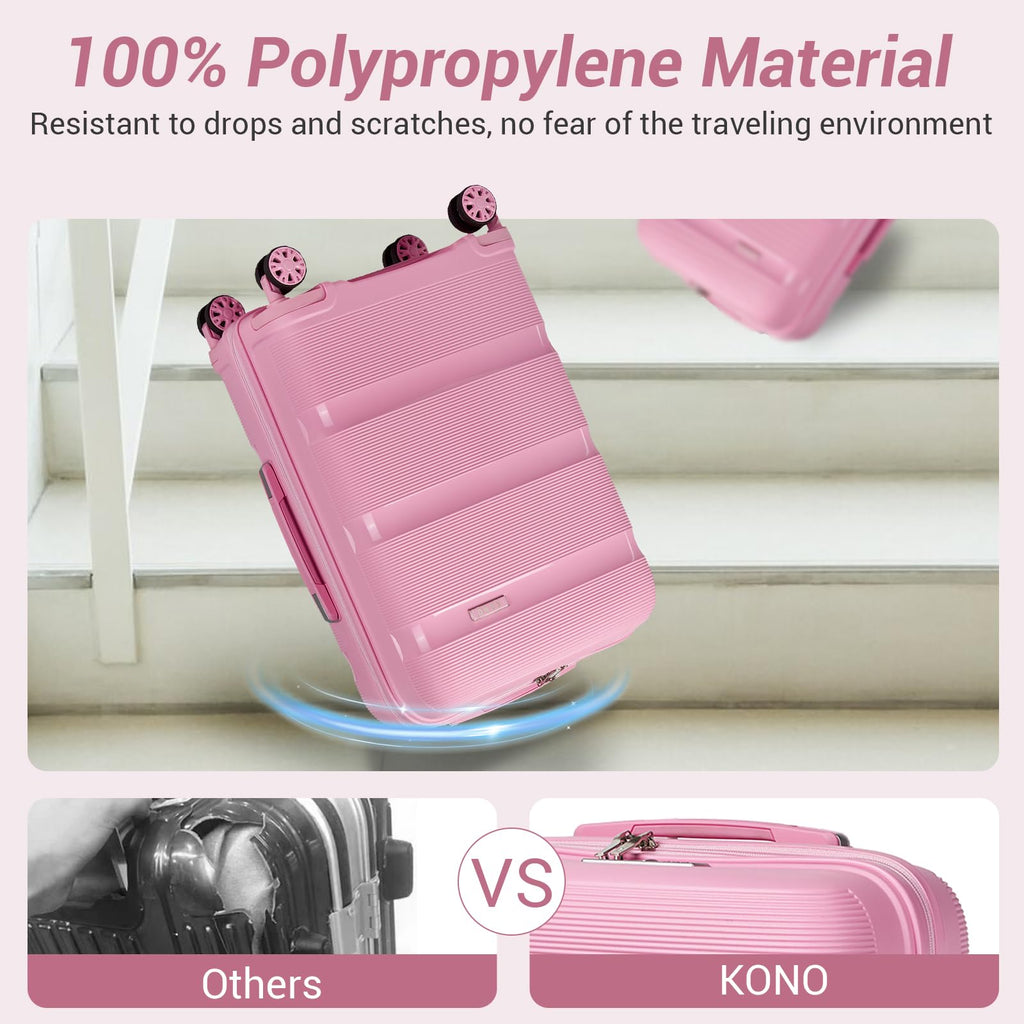 - 【LIGHTWEIGHT YET HARD SHELL】The outer shell is made of 100% PP(polypropylene) material, which is eco-friendly & anti-scratch, lighter, stronger and durable enough to withstand the rigors of modern transportation and provide the best protection. Kono PP luggage goes through strict quality control test, such as drop load test, handle lifting test, wheel rolling test, zipper test, etc.
