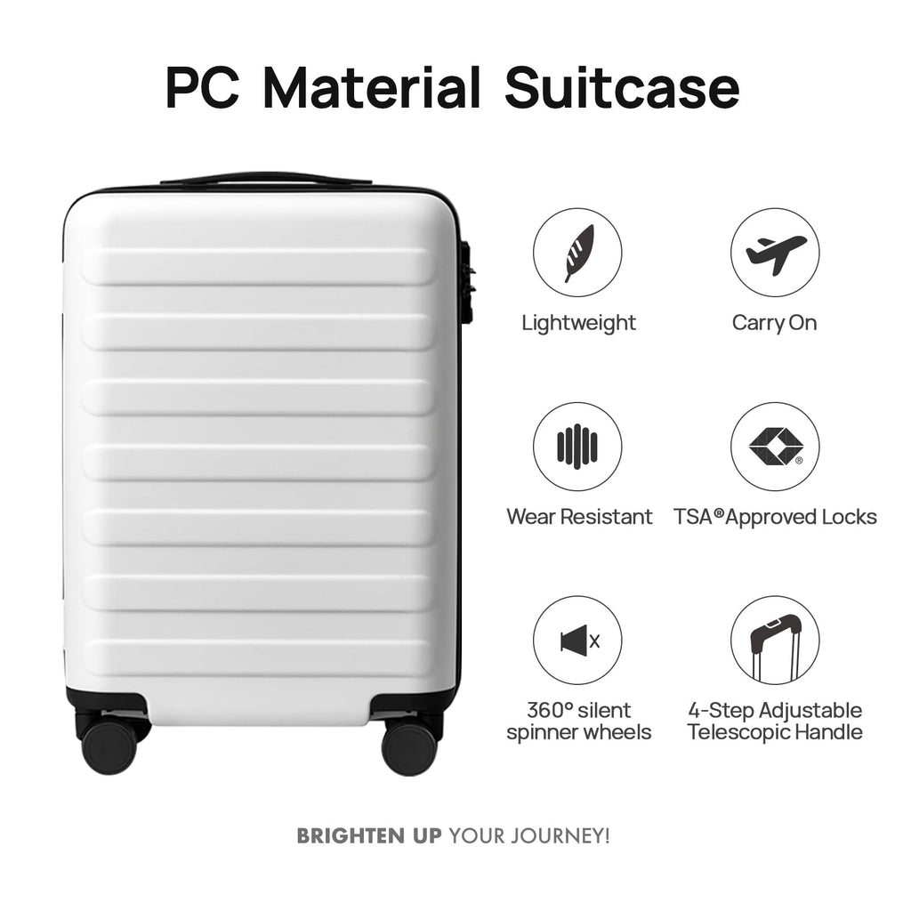 NINETYGO Carry On Luggage 22x14x9 Airline Approved, 20 Inch Luggage with Smooth Spinner Wheels, Lightweight, Hard Shell PC Suitcase Carry-On, Travel Luggage, TSA Approved (Lily White, Rhine Basic)