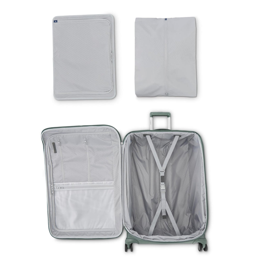- SUSTAINABLE STYLE WITH MODULAR ORGANIZATION: Crafted with eco-conscious Recyclex RPET fabric, this luggage features a Modular Packing Panel and Clean Chroma Lining, delivering sleek organization that extends beyond travel.