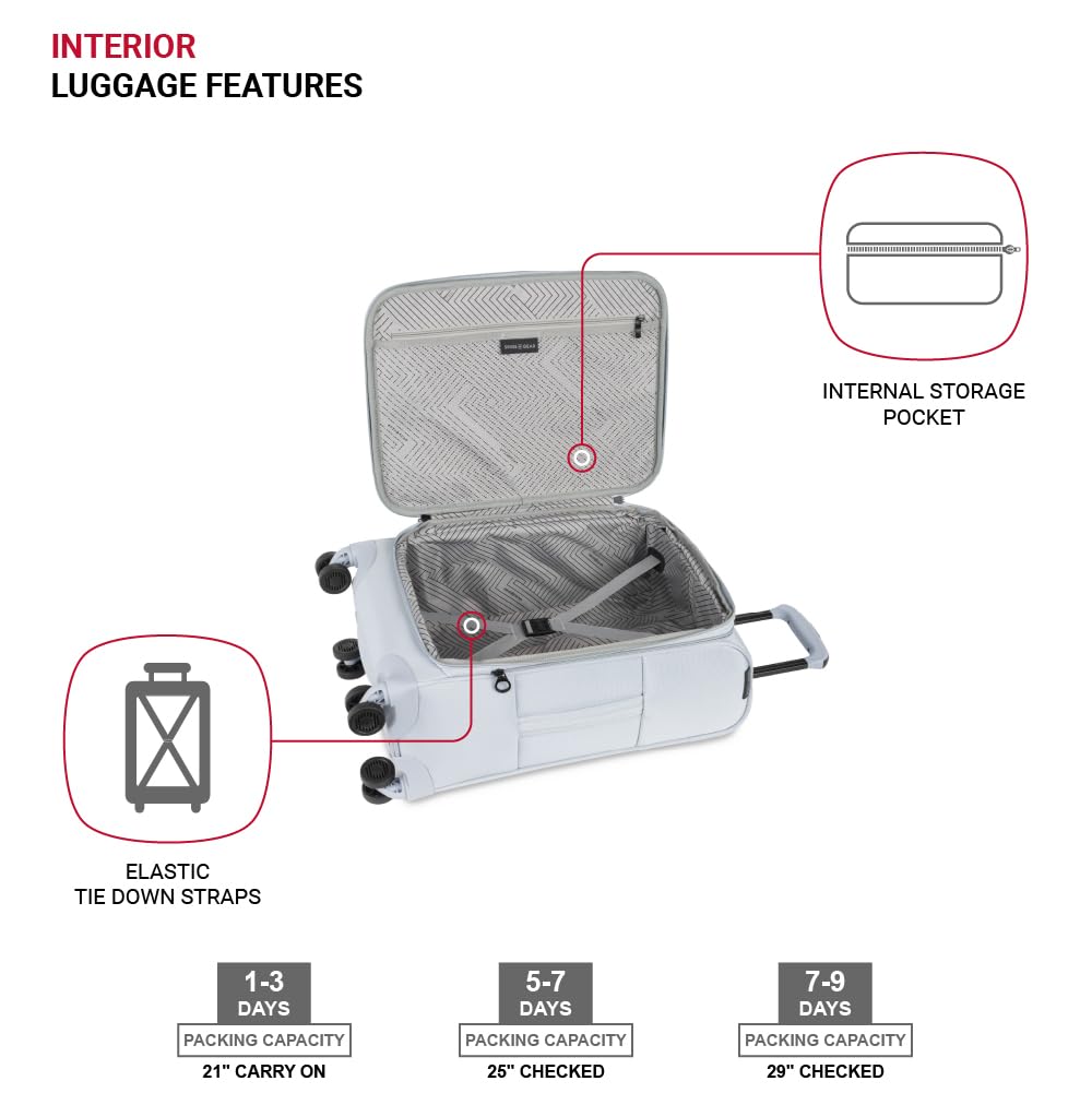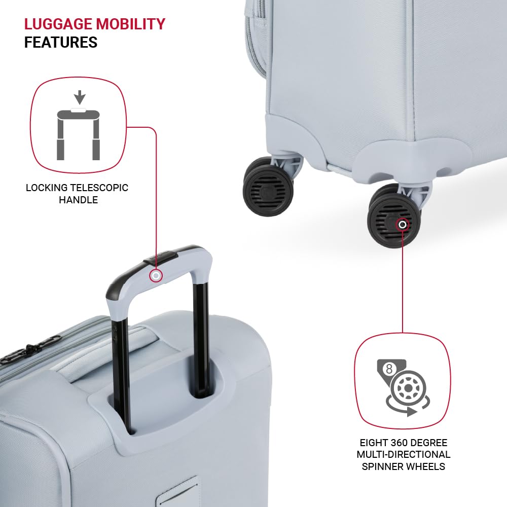 SwissGear Opulence Softside Expandable Luggage Light Blue – 3-Piece Suitcase Set with Spinner Wheels (21/25/29) – Ideal for 2-3 Week Trips