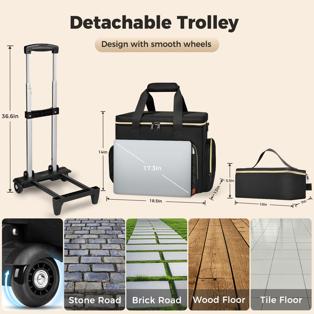 - Detachable Trolley & 2 Smooth Wheels: This rollling tote bag (15.6" L x 9.5" W x 13" H) is designed with 2 smooth wheels, which can roll easily over various surfaces. The design of the trolley for rolling laptop bag not only frees your shoulders during commutes but also fits easily into your car trunk after disassembly. The rolling briefcase for women is the ideal choice for teachers, counselors, and university lecturers