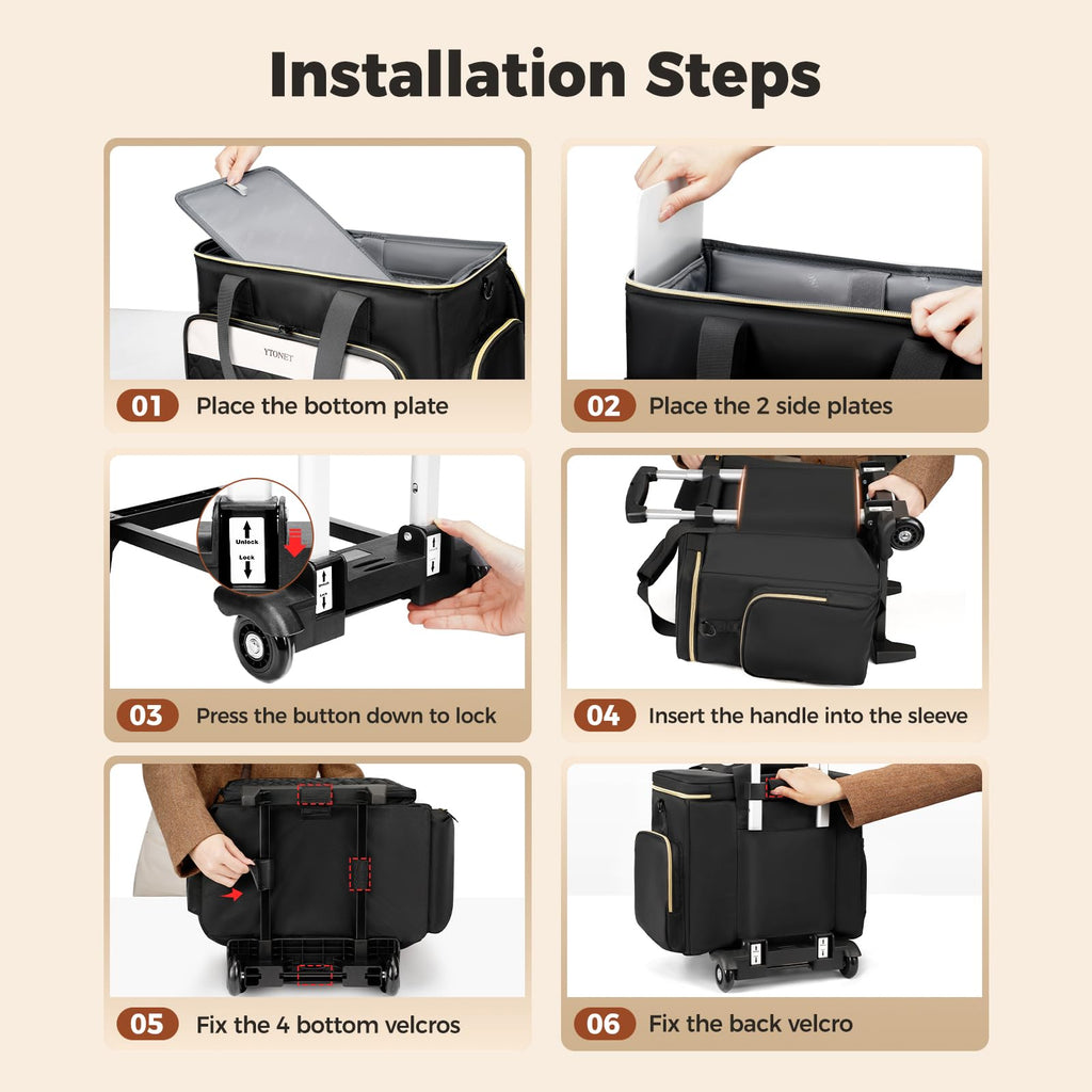 - Versatile 3-in-1 Carrying System: The retractable top cover of the rolling bag can be secured to the handle for quick and easy access to your belongings. Rolling cart offers three tailored carrying experiences: glide it when loaded, carry it on your shoulder for stairs, or stow it compactly after disassembly