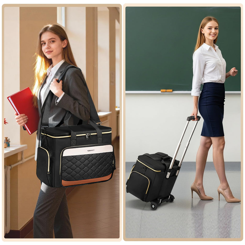Ytonet Rolling Teacher Bag with Insulated Lunch Carrier, 15.6" Rolling Laptop Bag Women with Detachable Dolly, Large Roller Briefcase for Women Roller Tote Bags for Teacher Work Office Nurse Craft