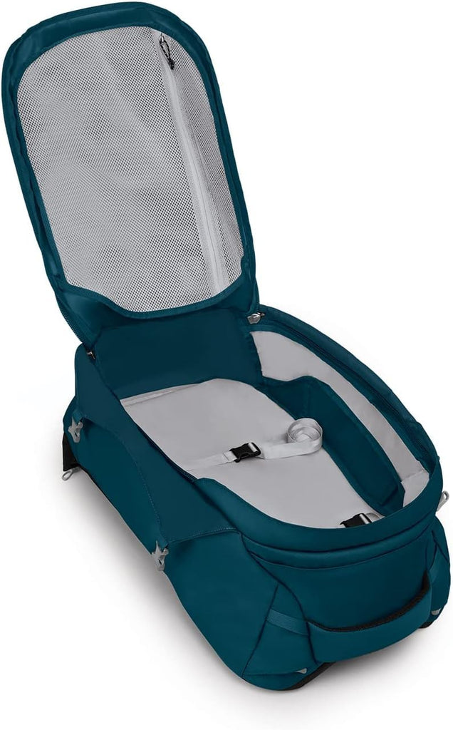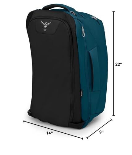 Brand: OspreyColor: Night Jungle BlueFeatures: Lightweight & Durable - Durable fabrics in high-wear areas combine with smart design to create a lightweight and tough travel pack that will last a lifetime. Stowaway Harness & Hipbelt - The harness stows away for safekeeping while checked and deploys quickly for any path...