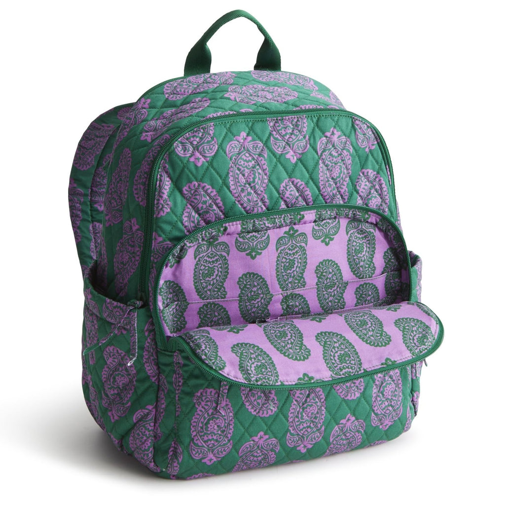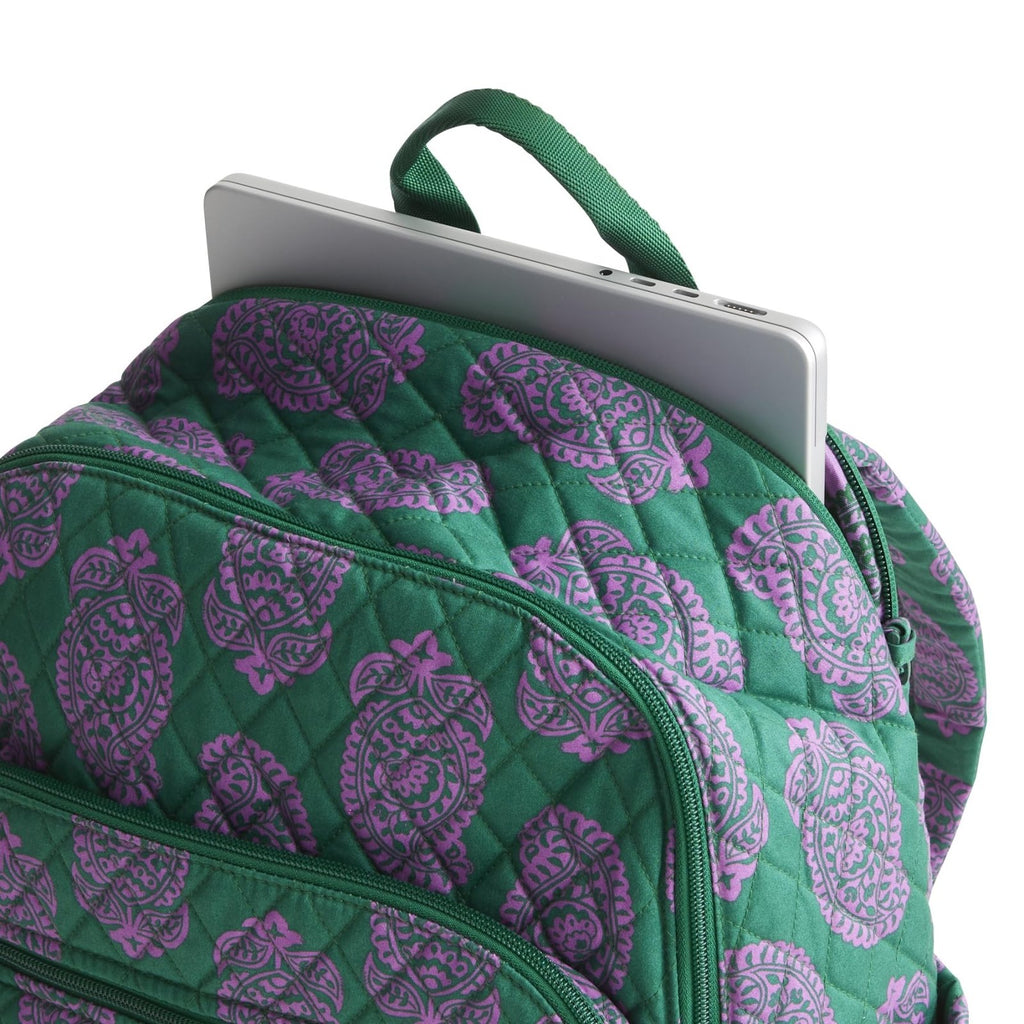 Vera Bradley Women's Bancroft Backpack - Premium Cotton, Iconic Paisley Green Jacket, One Size
