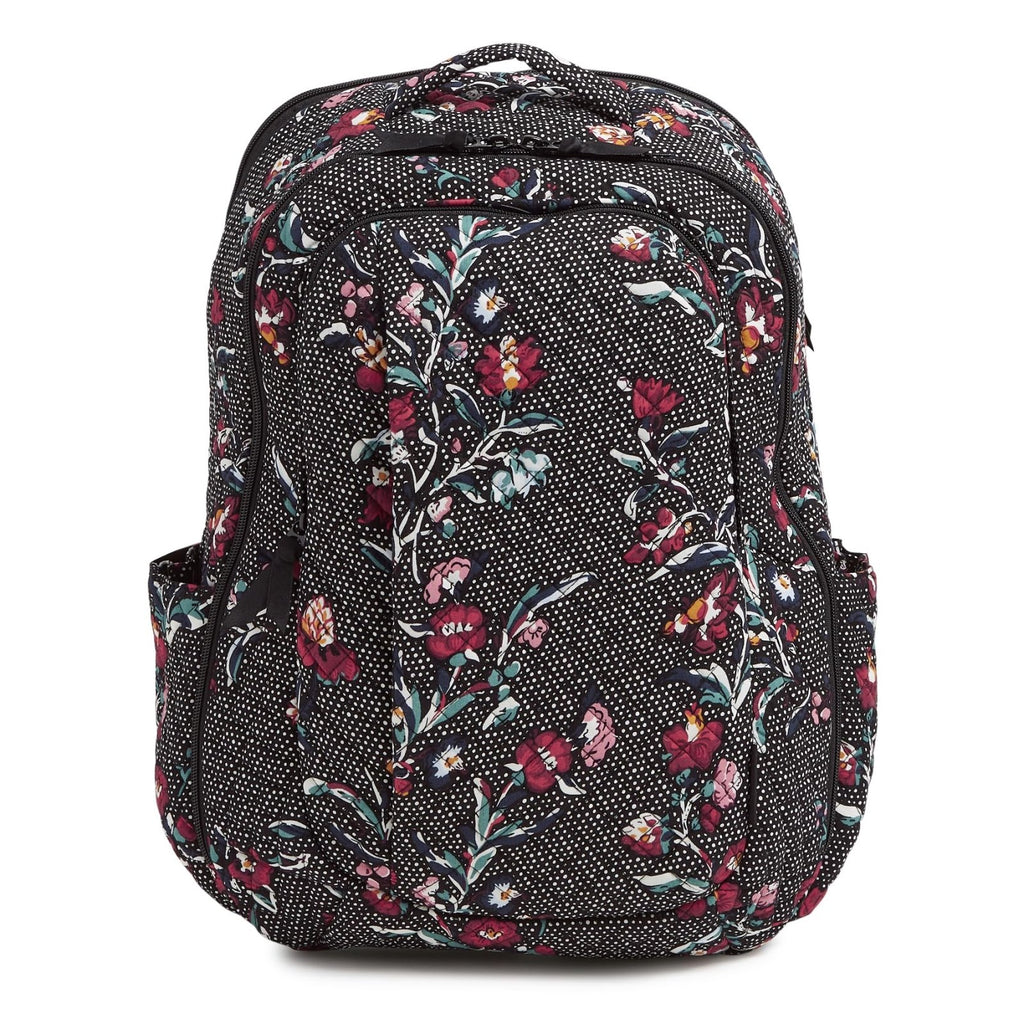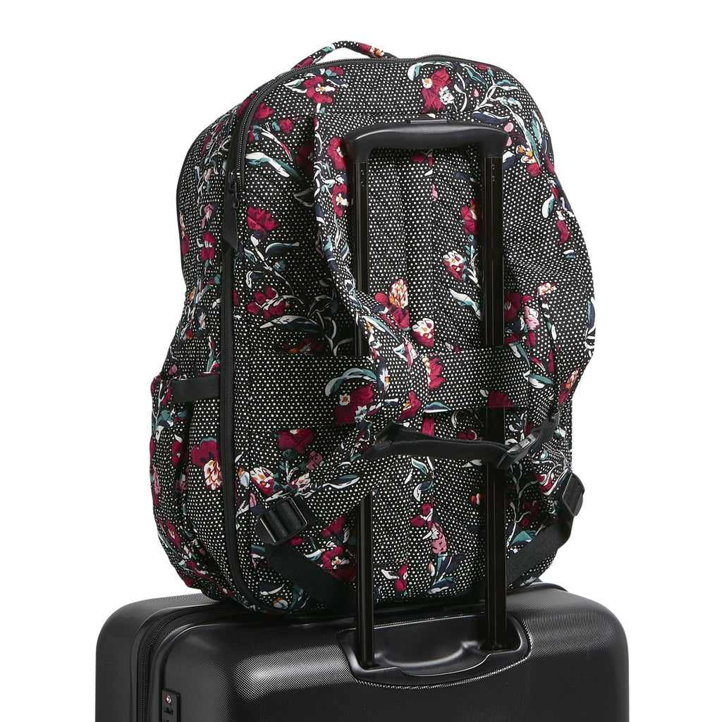 Vera Bradley Women's, Cotton Large Travel Backpack Travel Bag, Perennials Noir Dot, One Size