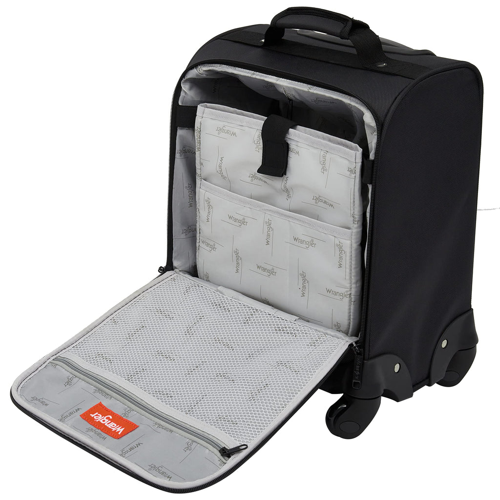 Wrangler 17" 4-Wheel Spinner Underseat Carry-On Luggage with USB Side Port and Laptop Compartment