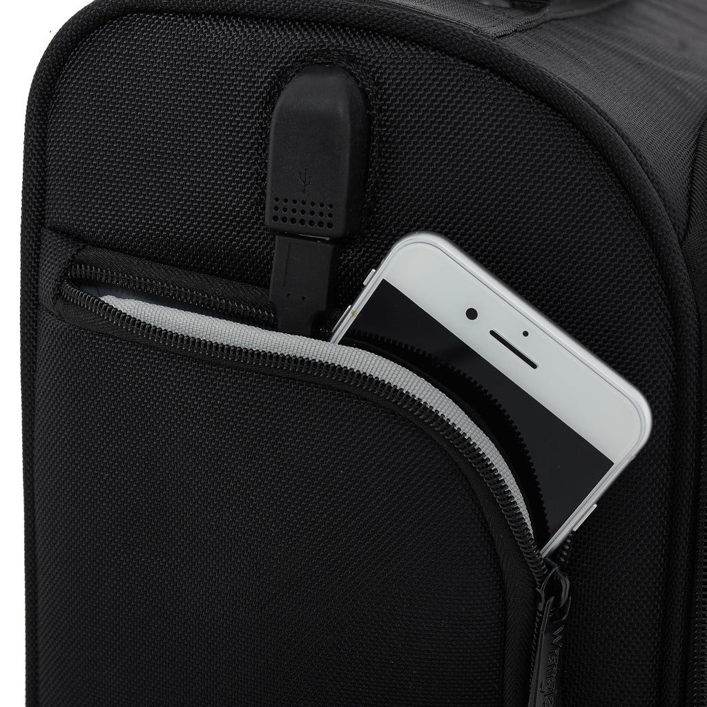 - Innovative Charging: The Wrangler 4-Wheel Spinner Luggage comes with a convenient side USB port, enabling you to charge your devices on the go (Note: Power bank not included)
