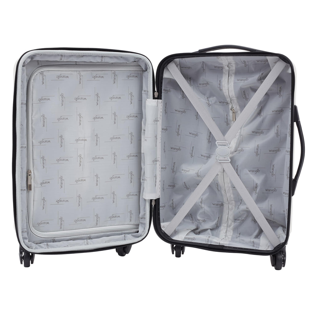 Brand: WranglerColor: BeigeFeatures: 3 piece set includes: 20" Carry on luggage and 2 additional packing cubes Expands for extra packing capacity Luggage has 4 spinner wheels for improved and smooth mobility that's easy on the wrist when traveling Luggage material: ABS hard-shell that's light yet durable Binding: Apparelmodel number: WR-A1633-260Part...