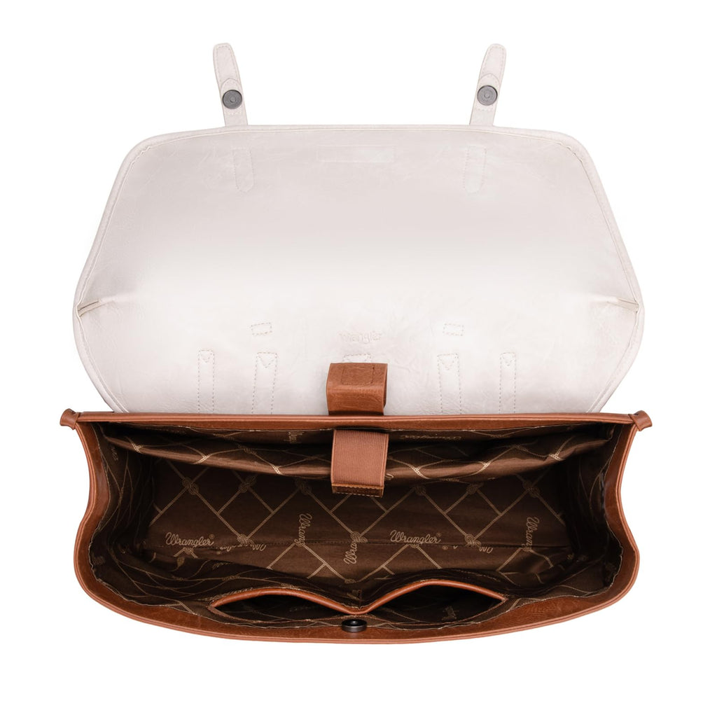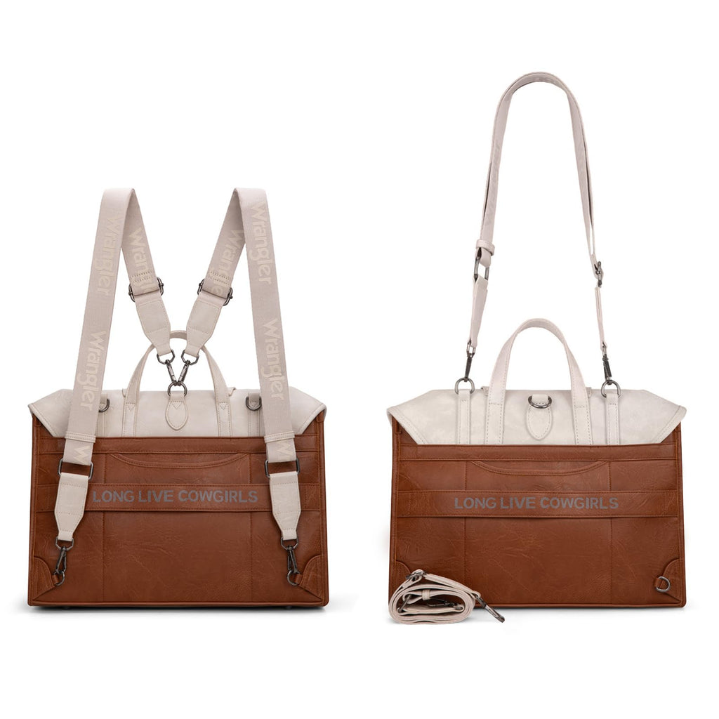 Brand: Montana WestColor: Beige & BrownFeatures: Versatile Design: The Wrangler briefcase bag features 2 adjustable and detachable shoulder straps (31.5''-47''), can be easily converted from a stylish shoulder briefcase to a convenient backpack or crossbody bag Spacious & Organized: With dimensions of 16.5 * 10.5 * 5 inches inches, this...