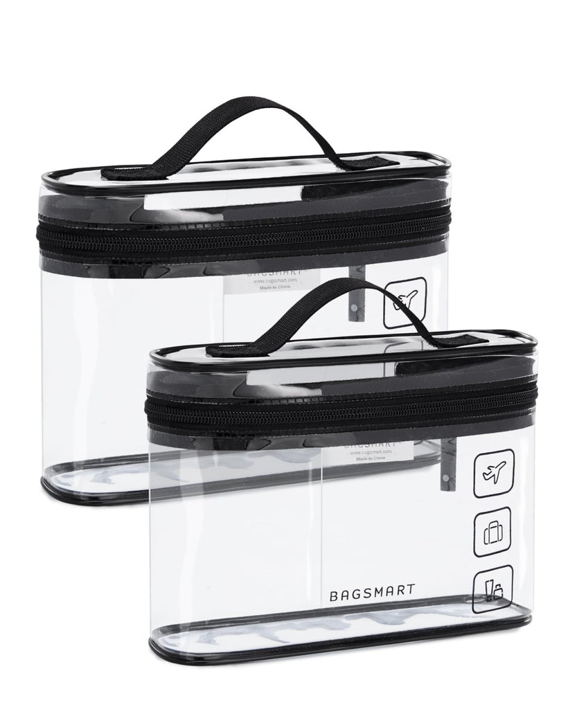BAGSMART TSA Approved Toiletry Bag, 2 Pack Clear Makeup Cosmetic Bag Organizer, Quart Size Travel Bag for Toiletries, Carry-on Travel Accessories Essentials, Black-2pcs