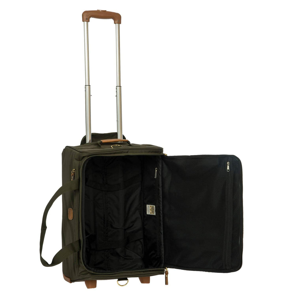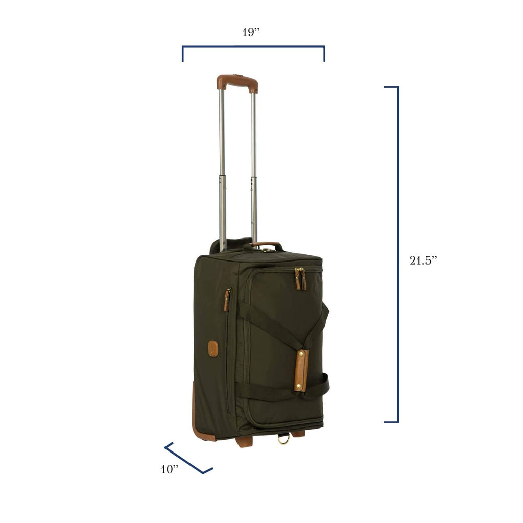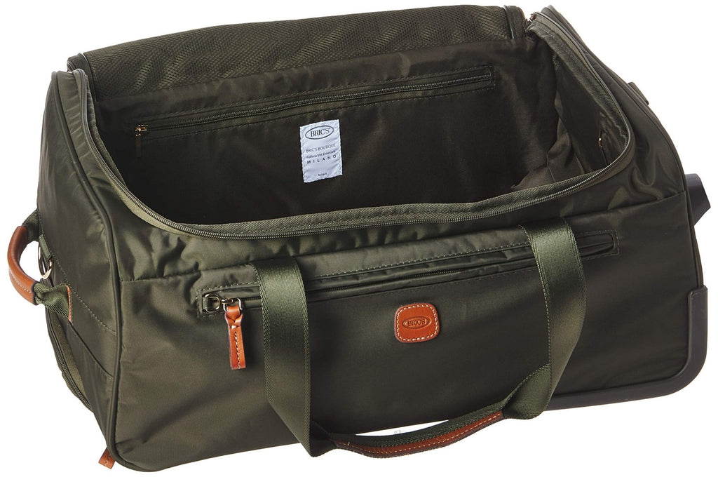 Bric’s X-Bag 21” Rolling Duffel – Water-Resistant Recycled Nylon Carry-On with Silent Wheels, Leather Details, Exterior Zipped Pocket, Garment Straps & Detachable Shoulder Strap – Olive