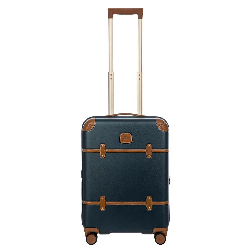 Bric's Bellagio 3.0 Spinner Trunk - Luxury Hardshell Carry On Luggage with Large Wheels,Telescopic Handle, Leather Detailing - Expandable Rolling Suitcase - 21", Blue