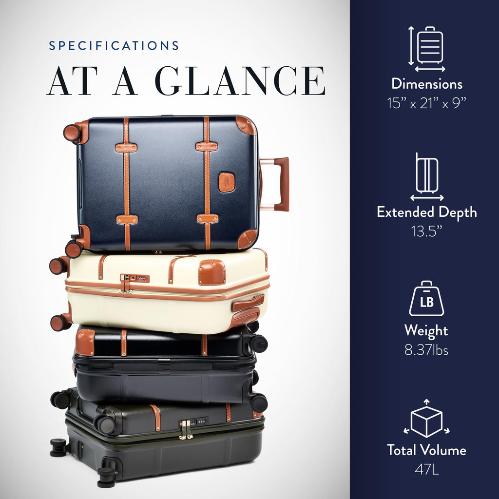 • ITALIAN LUXURY: The latest in our Bellagio collection of refined expandable spinner suitcases with wheels. This hard-sided carry on is crafted from premium materials and built to handle the rigors of travel with a timeless, handcrafted appeal.