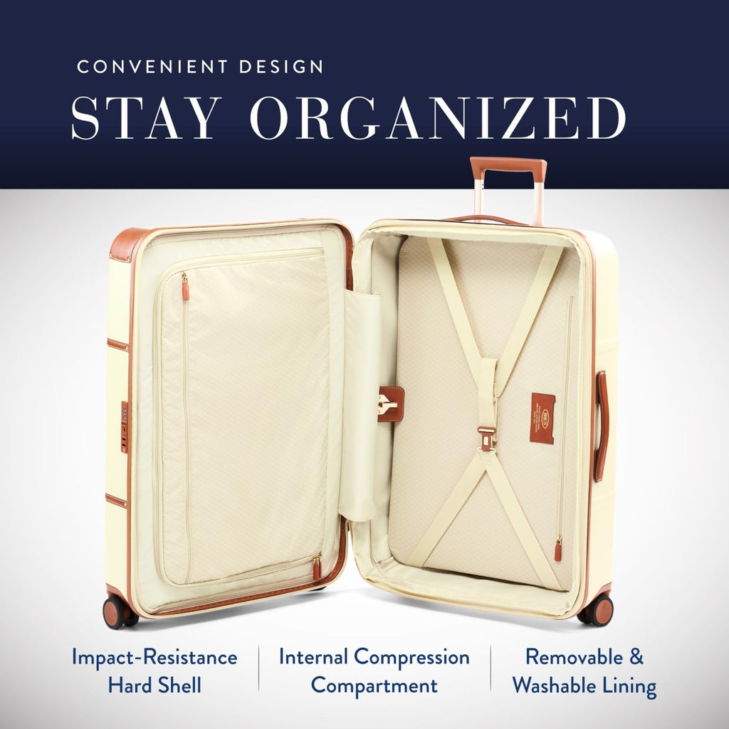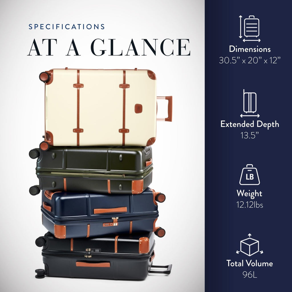Bric's Bellagio 3.0 Spinner Trunk- Luxury Hardshell Check In Luggage with Large Wheels, Telescopic Handle, Leather Detailing - Expandable Rolling Suitcase - 30", Cream
