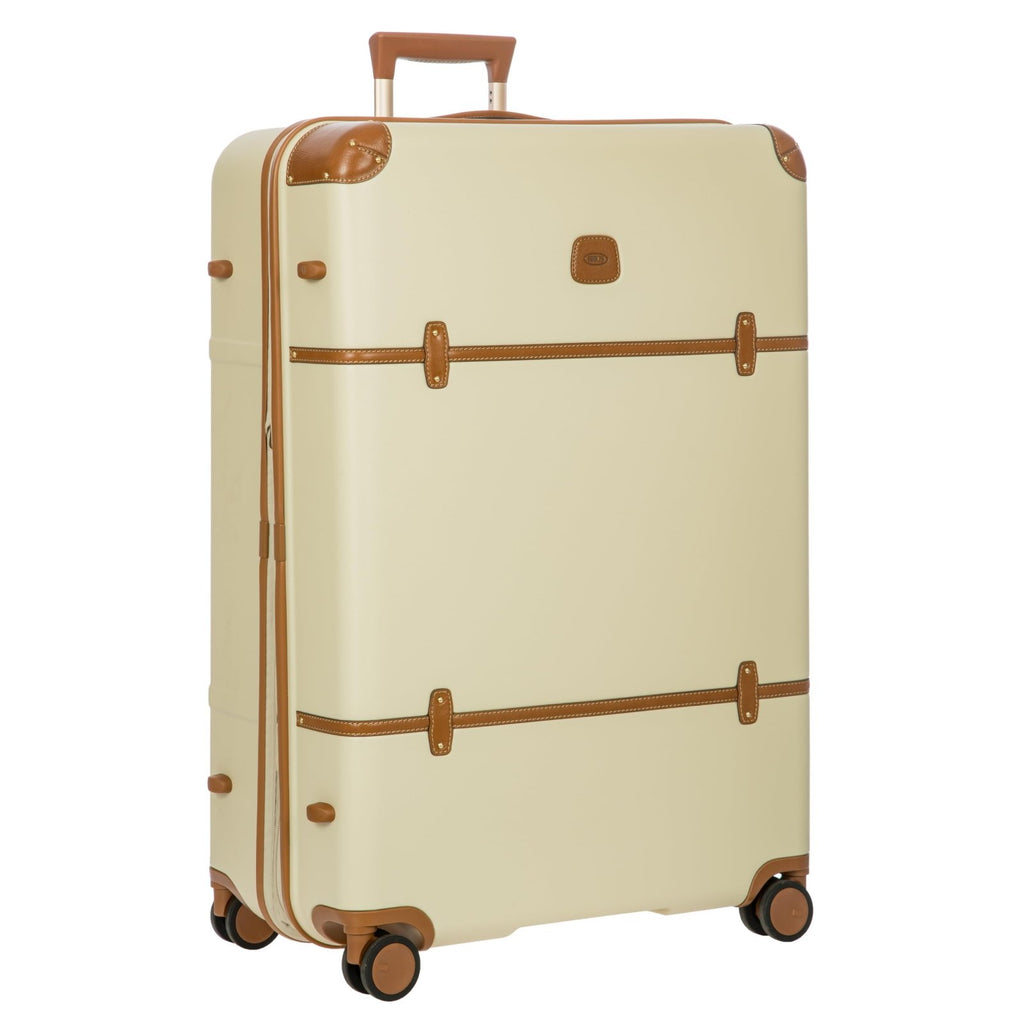 Bric's Bellagio 3.0 Spinner Trunk- Luxury Hardshell Check In Luggage with Large Wheels, Telescopic Handle, Leather Detailing - Expandable Rolling Suitcase - 32", Cream