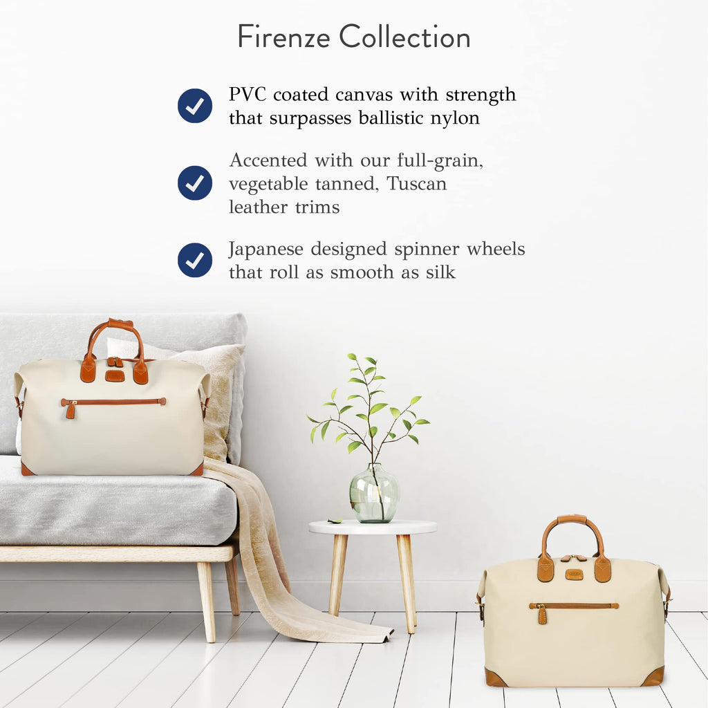 Bric's FIRENZE Cargo Duffel Bag - Luxury Travel Tote with Luggage Sleeve - Weekender and Travel Carry On Bags For Women and Men - Embossed PVC - 18 Inch, Cream