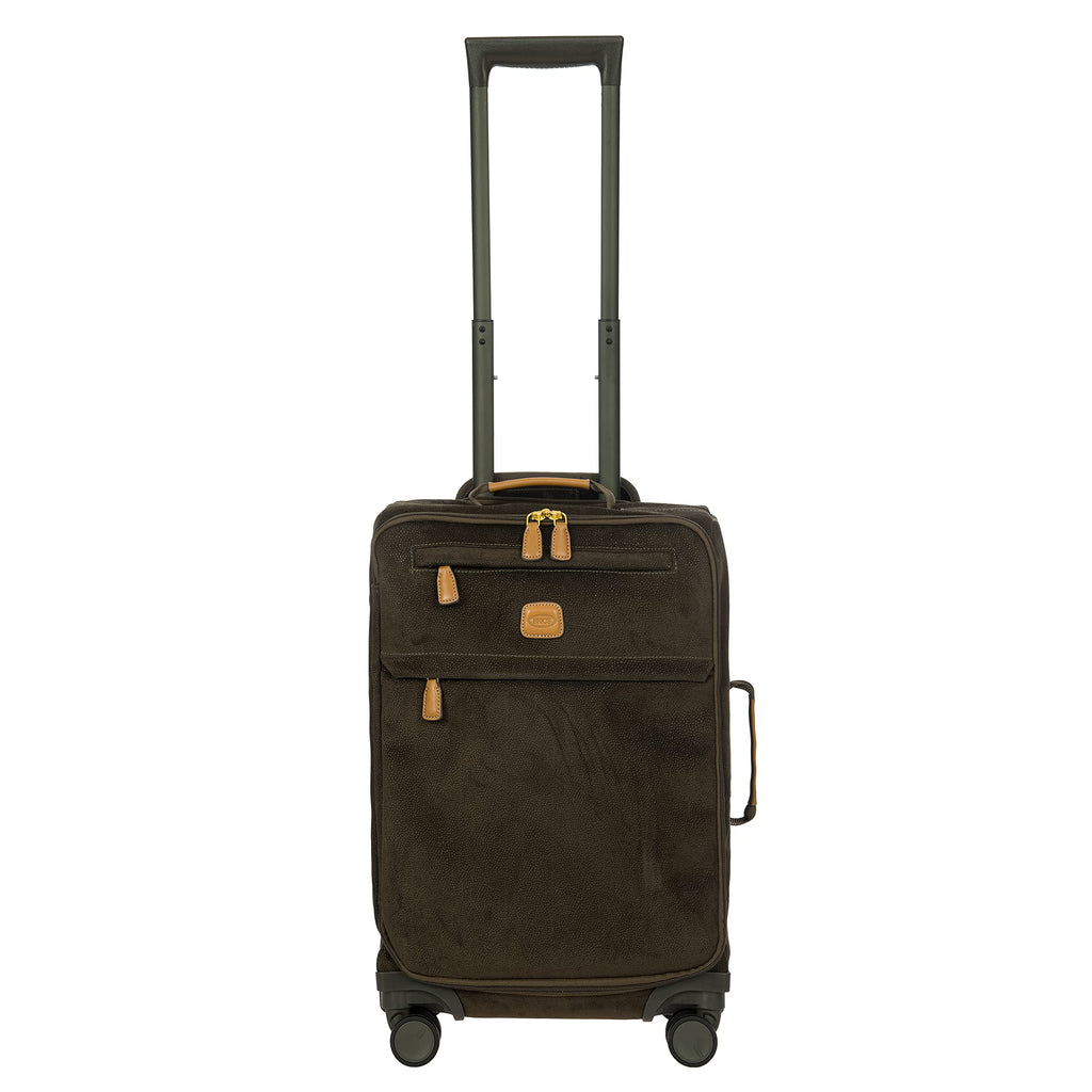 Bric's Life Tropea Carry On Spinner Luggage - Luxury Lightweight Suitcase with Spinner Wheels and Faux Suede Finish - 21", Olive