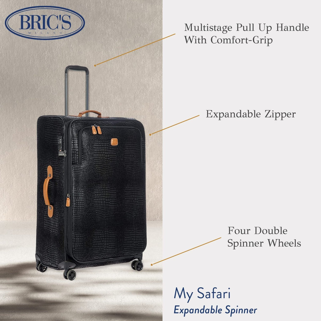 Bric's My Safari Spinner Suitcase, Lightweight Expandable Leather Shell Luggage with Smooth 360° Wheels and TSA Lock - 28 Inch, Black