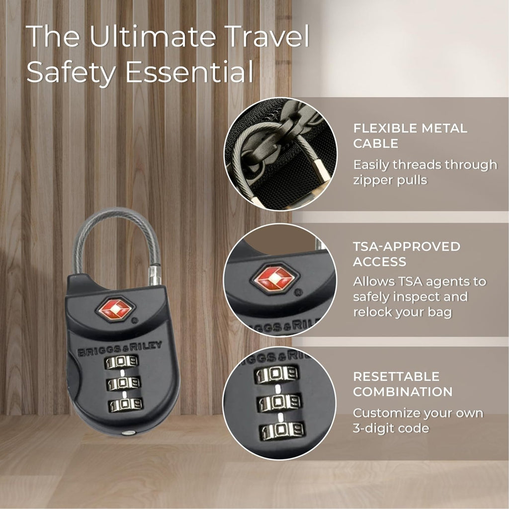 Brand: Briggs & RileyColor: BlackFeatures: PROTECT YOUR BELONGINGS - Combining security, convenience, and durability, the TSA Cable Luggage Lock is a reliable travel solution to safeguard your items during your trips TSA APPROVED CABLE LOCK - This lock is TSA-approved, allowing airport security to inspect your luggage without damaging the...