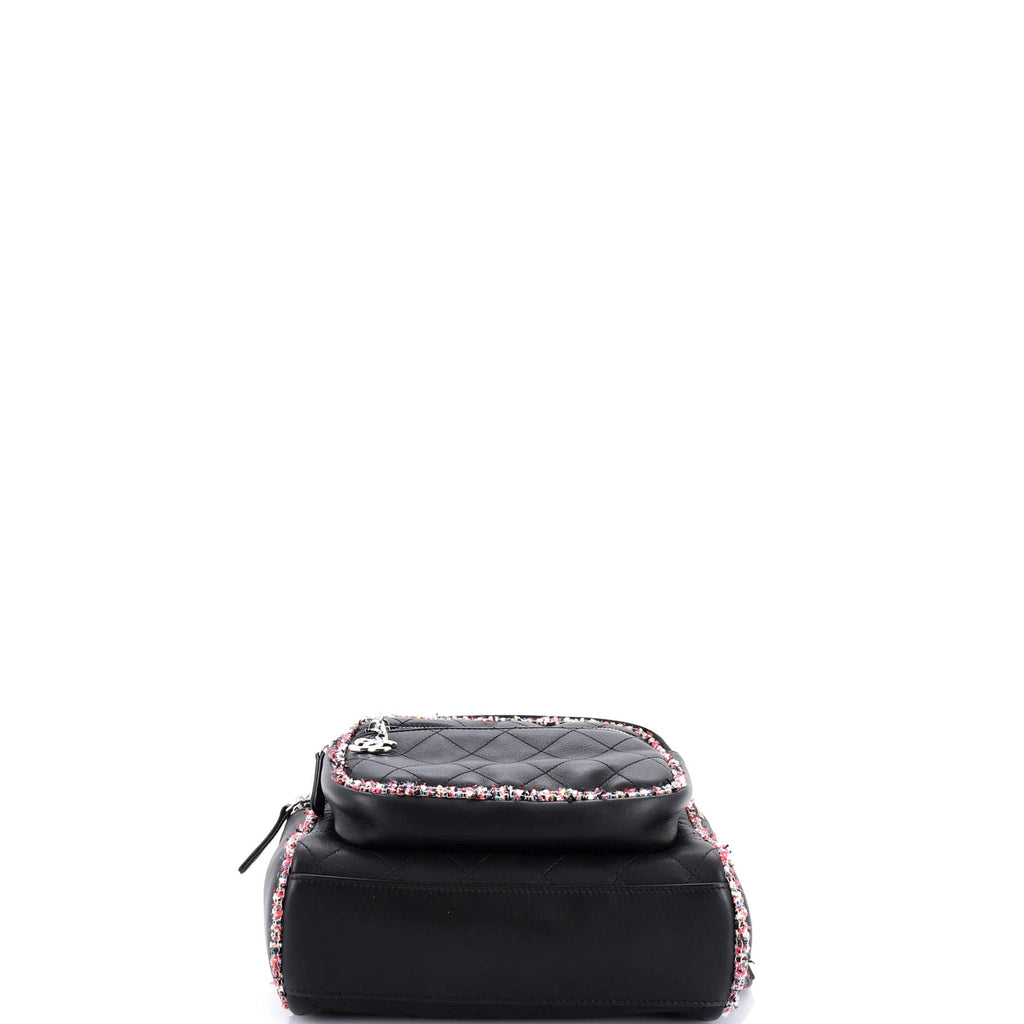 Chanel, Pre-Loved Elegant Trim Backpack Quilted Leather with Tweed Small, Black