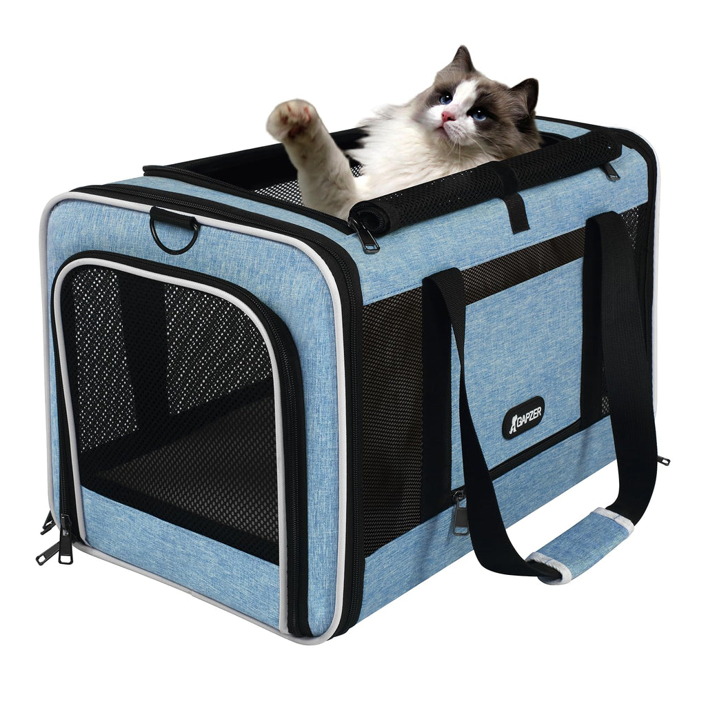 GAPZER Cat Carrier 18 x 11 x 11 Top Loading Soft-Sided Pet Travel Bag Over 15lbs, Portable Small Dog Puppy Car Crate 10 lbs, Chihuahua Kennel Carry Case, Kitty Cloth Cage Medium Cat Under 25 Blue