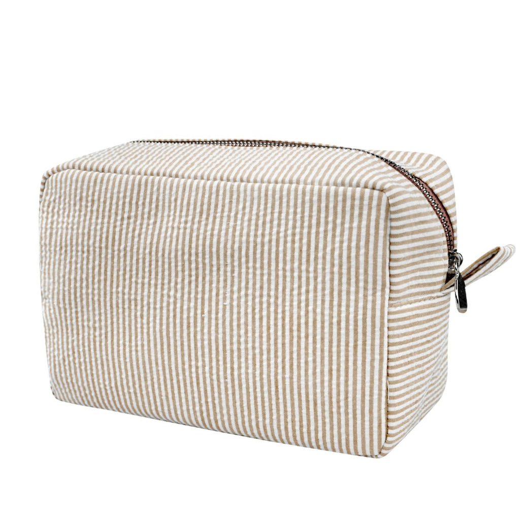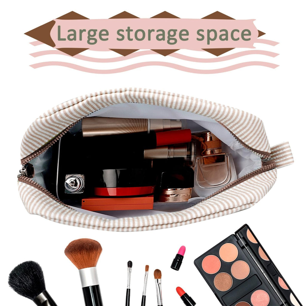 GFU Cosmetic Bags for Women, Seersucker Cosmetic Bag, Travel Toiletry Stripe Makeup Bag, Large Women Aesthetic Organizer Storage Pouch, Girls Handbags Purses, brown