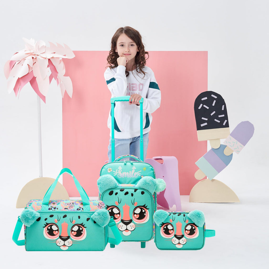 Brand: HomskiiiColor: Green LeopardFeatures: 3-in-1 Luggage Set: Includes a 16inch luggage,a travel duffle bag and multi-function bag. Large Capacity:With multiple zippered compartments, the 16" kid suitcase and kids overnight bag meets the storage needs for traveling and other outings. Multi-functional case can be used as a kids toiletry bag, makeup...