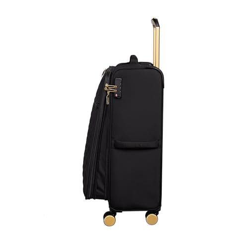 Part of the Glimmering range, this large suitcase brings runway-inspired style to your travel routine with a blend of luxurious design and practical functionality. The elegant quilted front panel, accented by gold-tone hardware and detailing, gives the Glimmering Large a polished, high-fashion appeal, beautifully complemented by its chic interior. Thoughtful features include an easy-access front zippered pocket for essentials and a premium 8-wheel spinner system that delivers exceptional smoothness and control from check-in to arrival. With a spacious 106L packing capacity and an impressively lightweight construction, the Glimmering Large is perfectly suited for extended vacations or for travelers flying with airlines that enforce stricter weight limits.