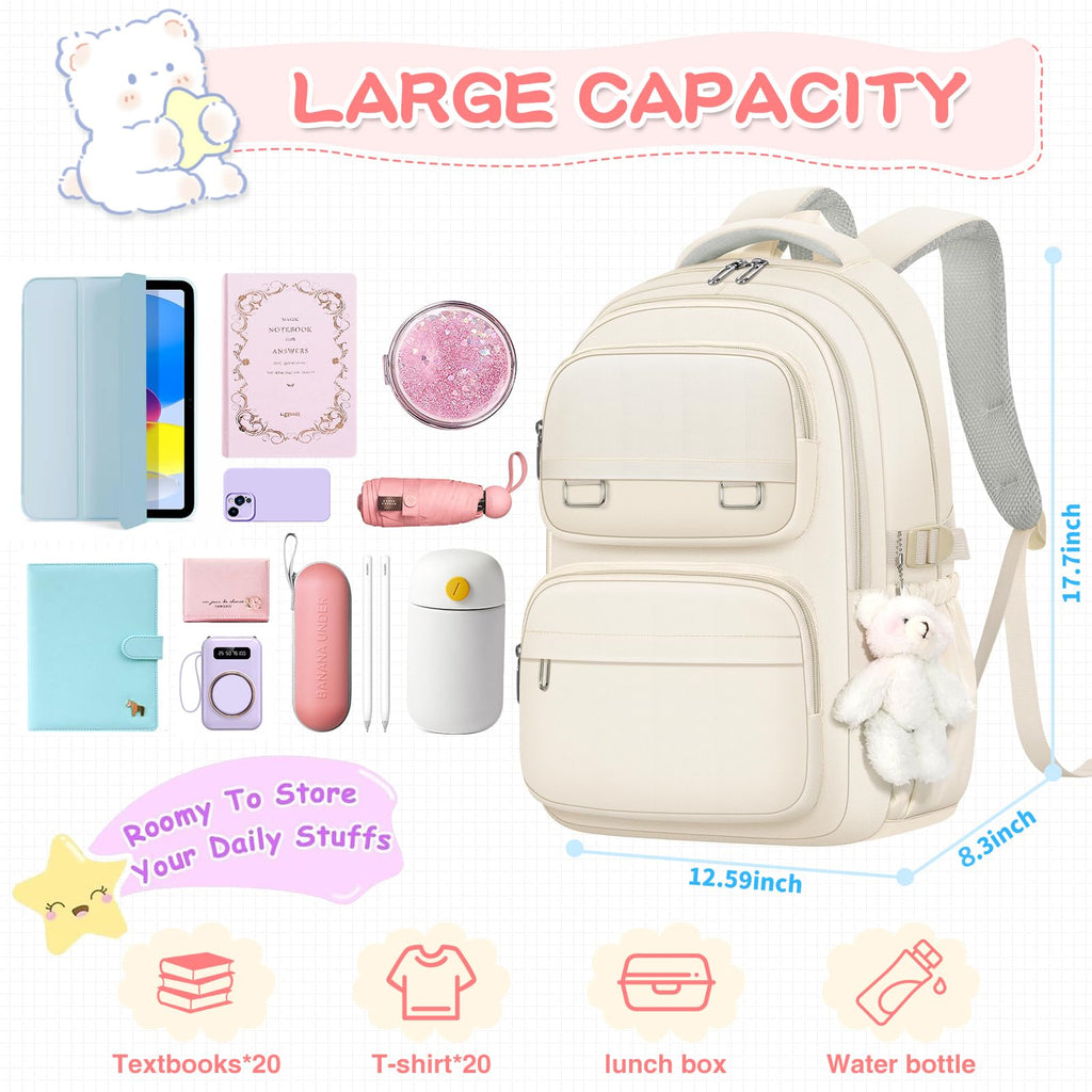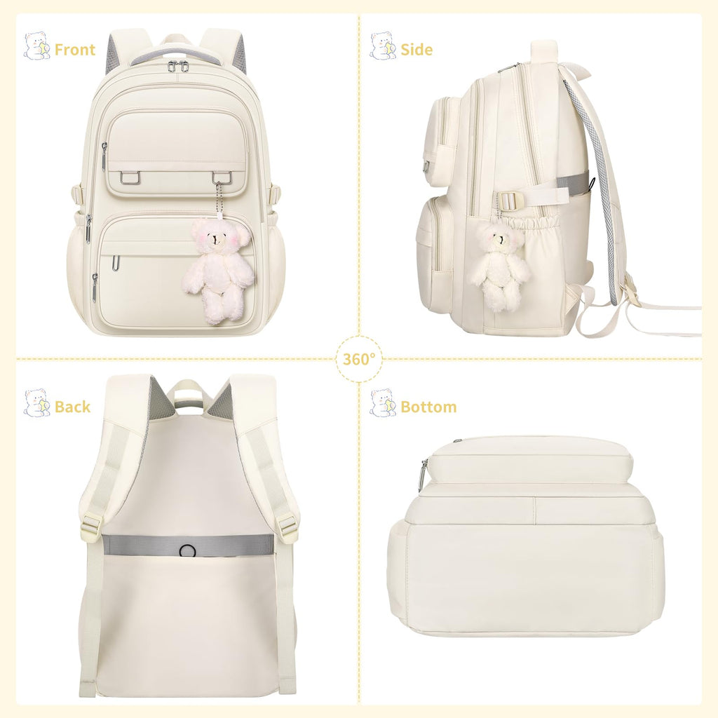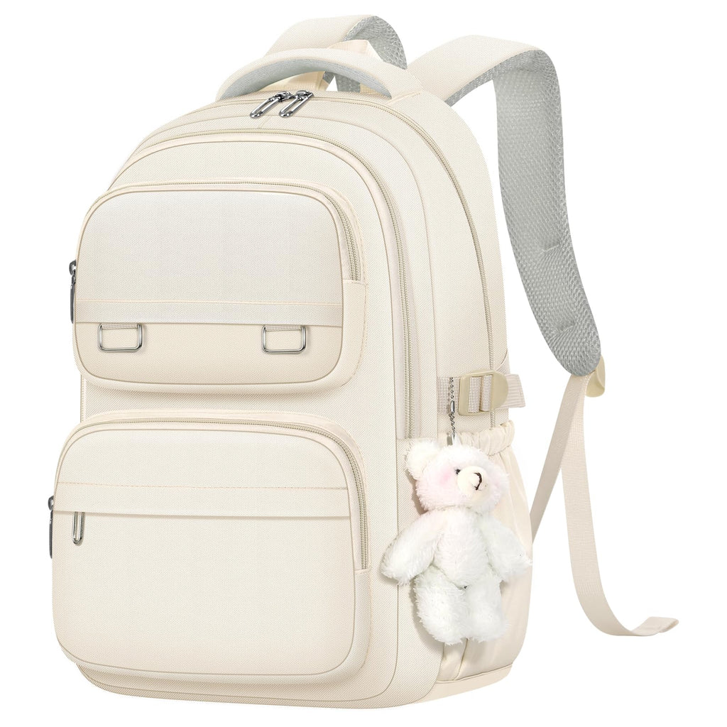 KBTYE School Backpack for Kids Girls Cute Travel Backapck for College Women Men Casual Laptop Bookbag for Teen Student(Beige)