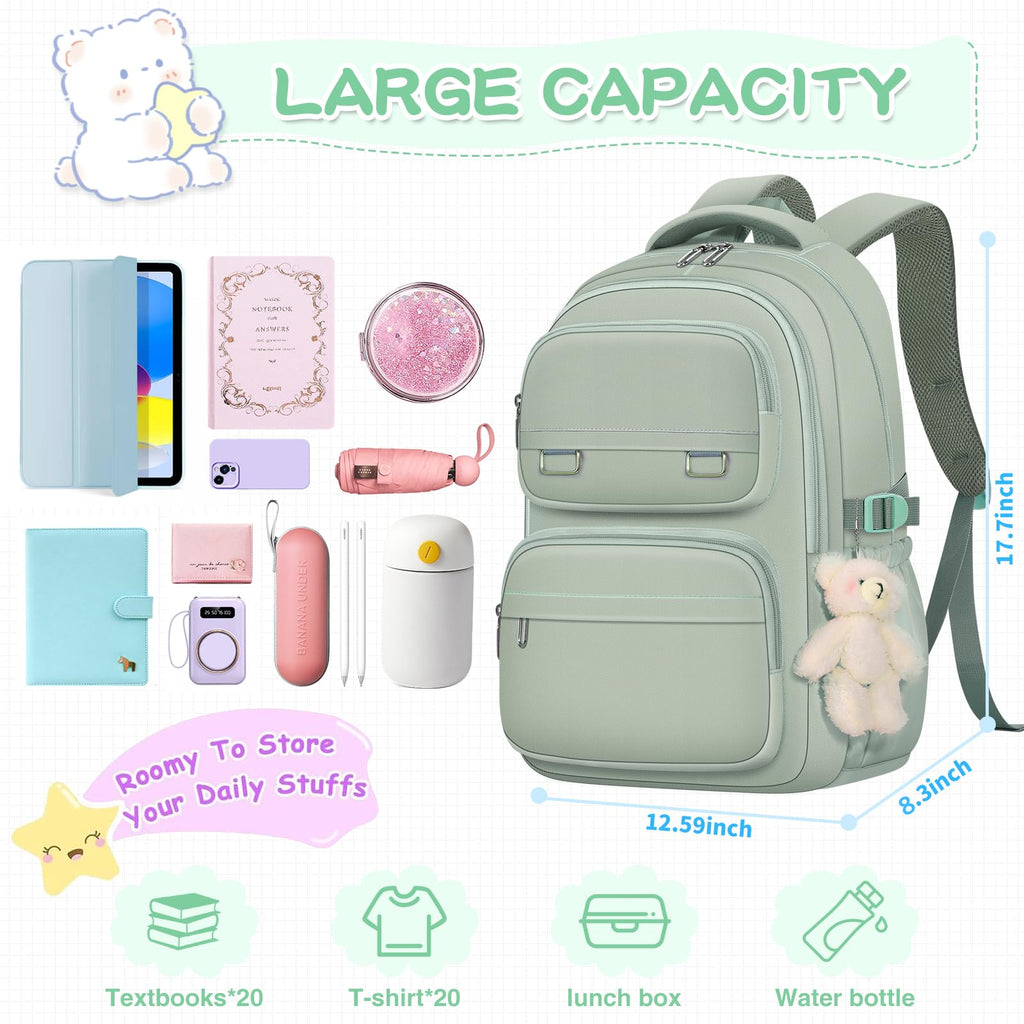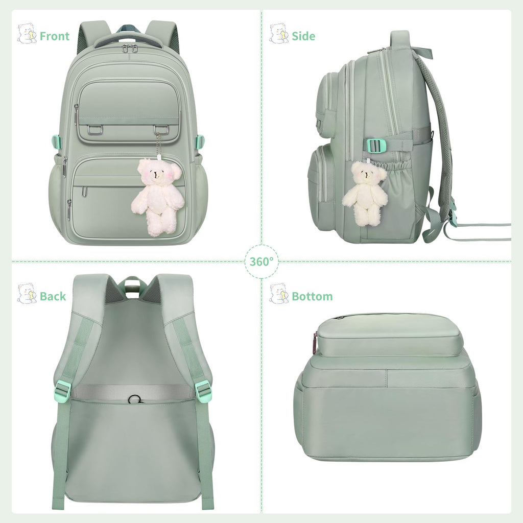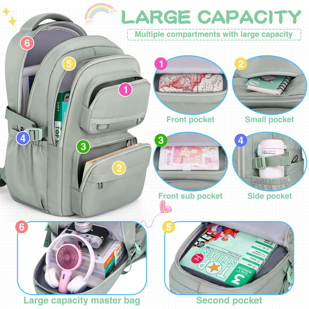 KBTYE School Backpack for Kids Girls Cute Travel Backapck for College Women Men Casual Laptop Bookbag for Teen Student(Green)