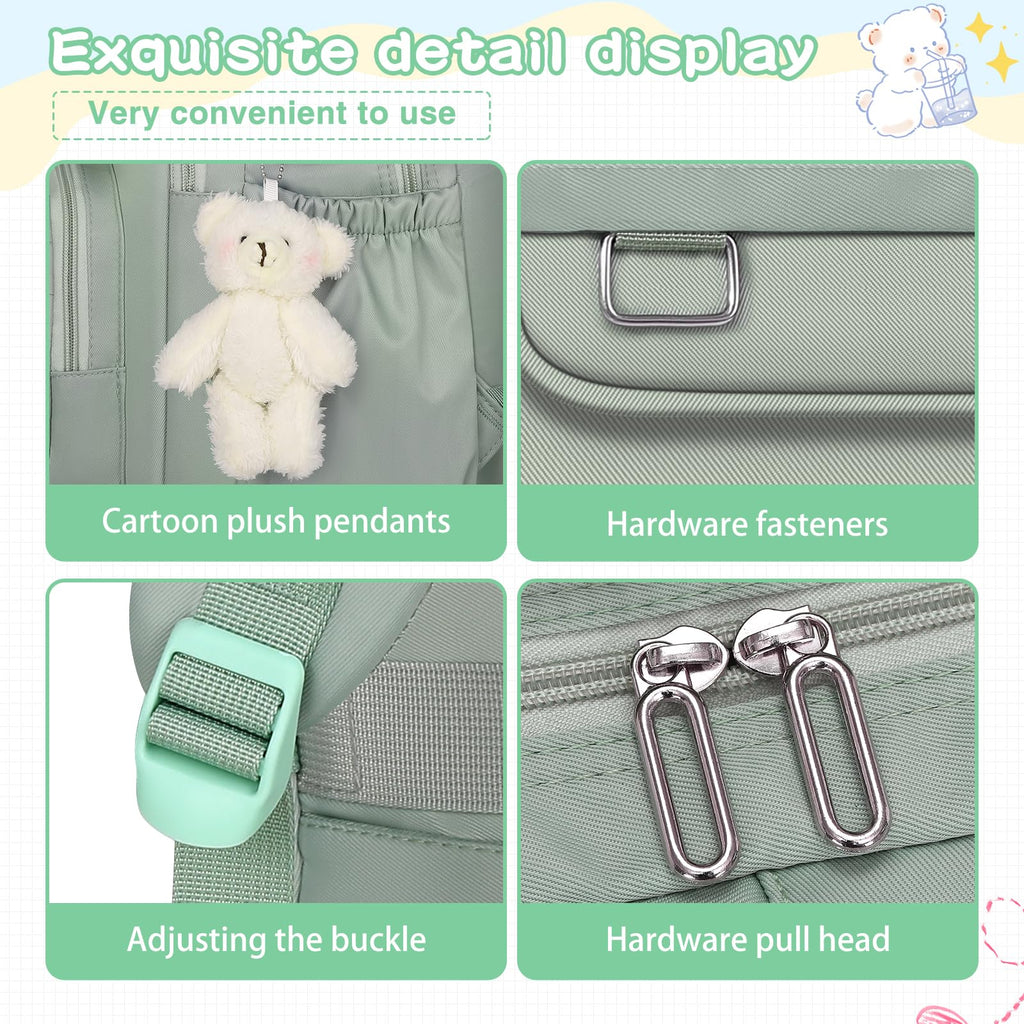 Brand: KBTYEColor: GreenFeatures: 【Good Material】The backpack for school is made of ultra-lightweight and high-density wear-resistant nylon which can effectively protect your essentials. So you can be confident that this school bookbag will last for years. With smooth zippers and metal texture pulls, this cute backpack will be the perfect choice...
