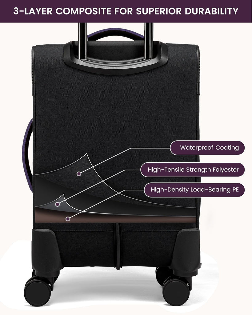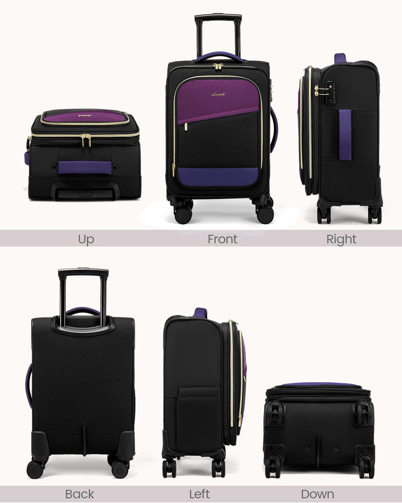 Brand: LOVEVOOKColor: Black-violet-indigo PurpleFeatures: 【Airline-Friendly Size】This carry on luggage is designed to fit major airline requirements (22×14×9 inches, including wheels). Perfect for overhead bins, it’s the ideal suitcase for hassle-free travel with airlines like Spirit, Frontier, and JetBlue. 【Quick-Access Pockets】Stay organized with this carry on suitcase featuring 3 exterior compartments...