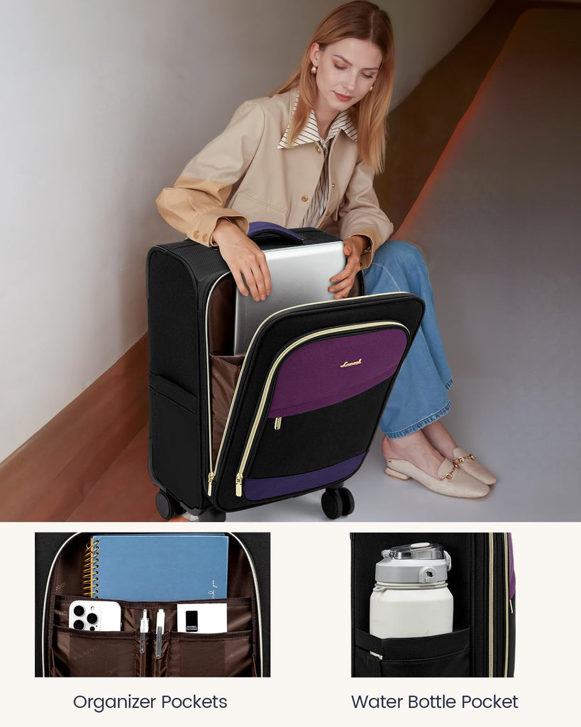 - 【Quick-Access Pockets】Stay organized with this carry on suitcase featuring 3 exterior compartments and a water bottle pocket. It’s perfect for easy item retrieval during airport security checks, ensuring your travel essentials are always within reach.