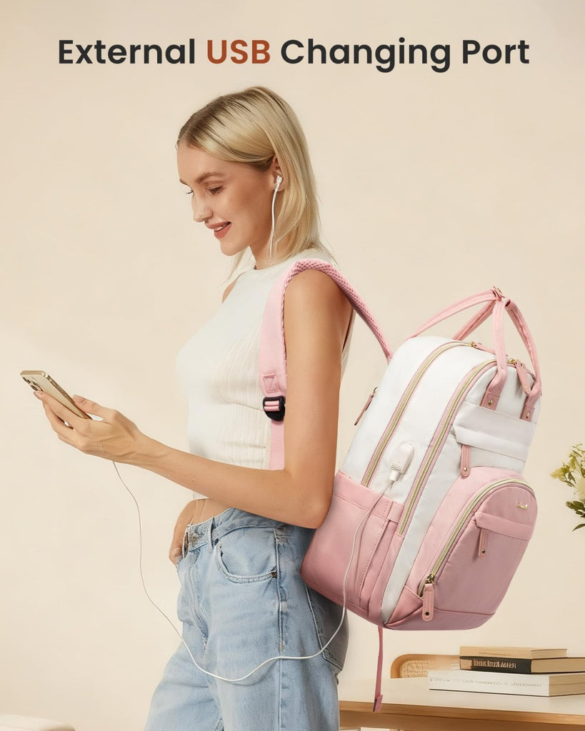 LOVEVOOK Backpack for Women,Laptop Backpack Women,Fits 15.6 Inch Laptop Bag,School Backpacks,Fashion Travel Work Anti-theft Bag,Waterproof Business Computer College Backpack Purse,Beige-Pink-Pink