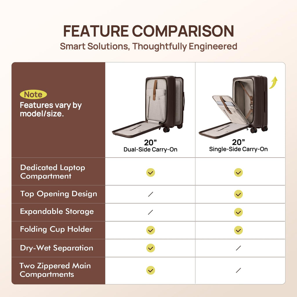 - 【Smart Front-Access & Double TSA Lock】20" Carry on with the quick-access front panel opens smoothly with adjustable angles for easy retrieval of laptops (up to 16") and travel documents. Dual TSA-approved locks separately secure both the main compartment and front panel for comprehensive safety.