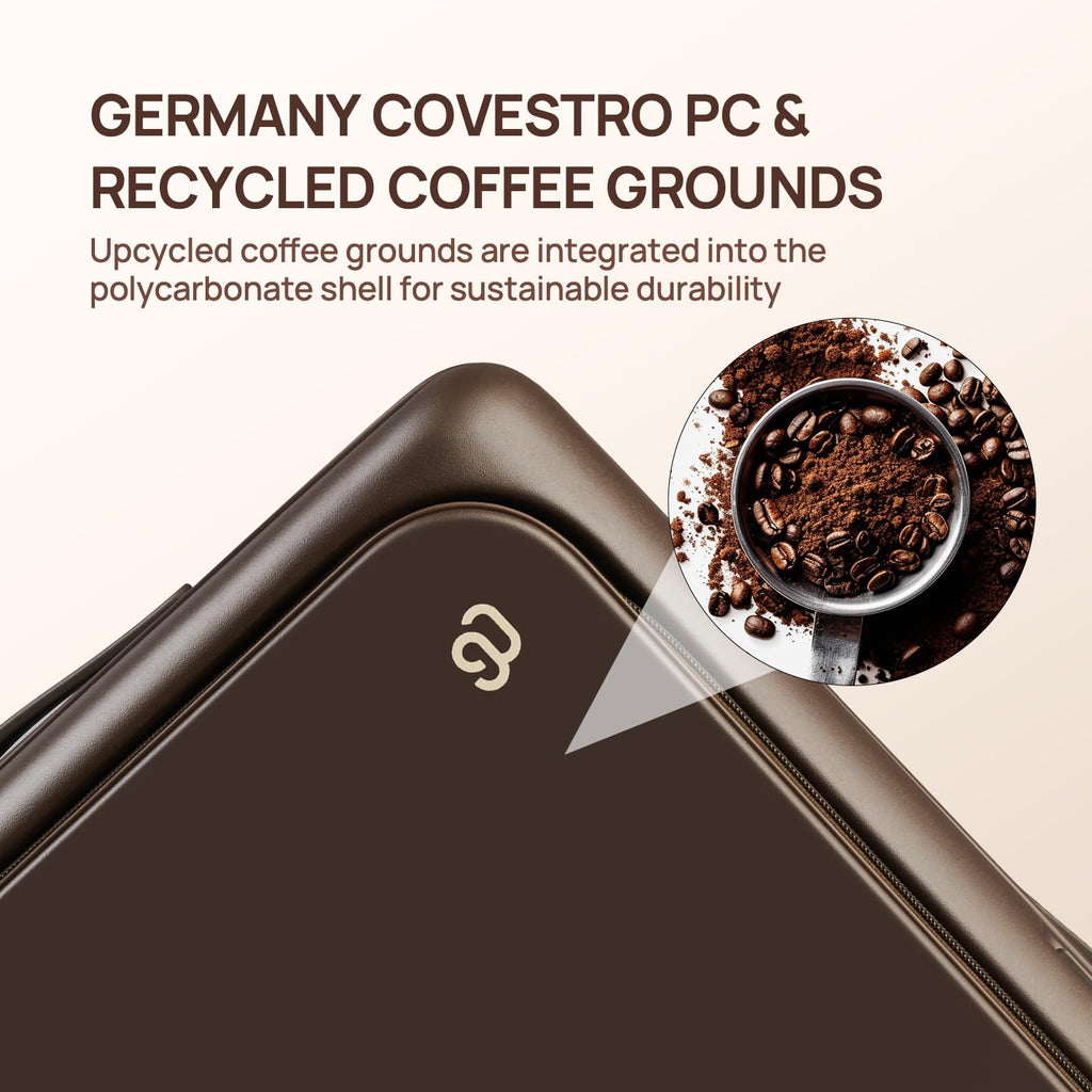 - 【Eco-Conscious & Rugged Construction】Crafted with Germany Covestro polycarbonate and recycled coffee grounds, this innovative hard shell delivers scratch-resistant, shock-absorbing, and compression-proof protection. By repurposing coffee waste into durable travel gear, we transform everyday sustainability into extraordinary resilience – just like turning morning coffee into lasting strength.