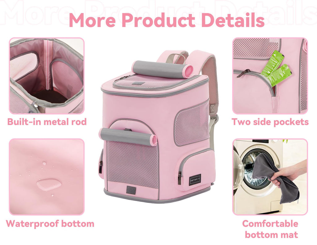 PETSFIT Pet Carrier Backpack with Upgraded Waist Protection, Cat Carrier Backpack Designed for Small Dogs/Cats, Fully Ventilated Collapsible Dog Backpack for Outdoor Traveling Hiking Camping, Pink
