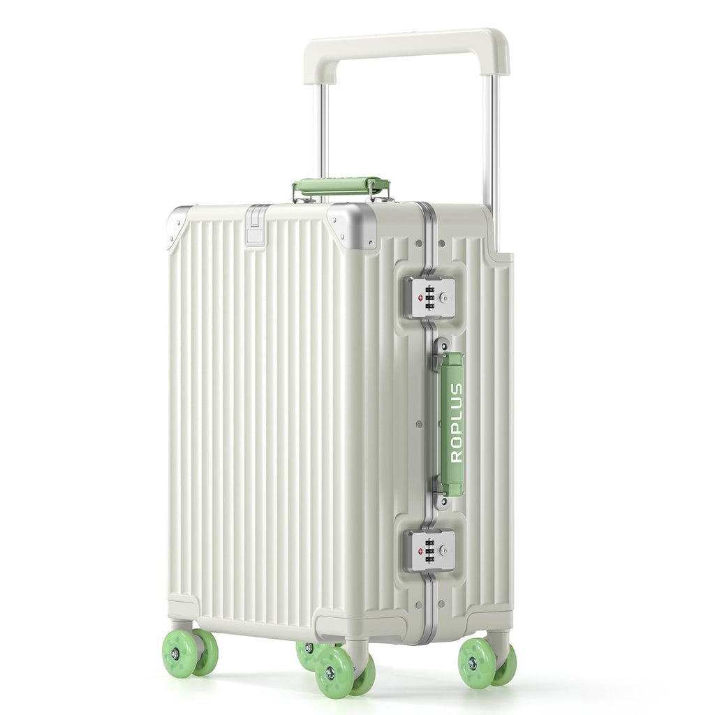 ROPLUS Aluminium Frame Carry on Luggage with Smooth Jelly Wheels, Hardside Zipperless Rolling Suitcase with TSA Lock (WhiteGreen, 21-Inch)