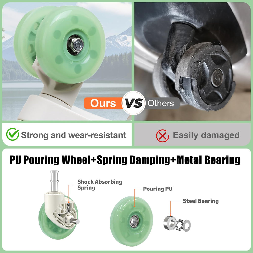 • JELLY WHEELS: The wheels determine the durability of the luggage. The suitcase is equipped with PU infused reinforced jelly wheels and shock absorbing springs are added. Not only stylish in appearance, but also smoother, more wear-resistant and shock-absorbing
