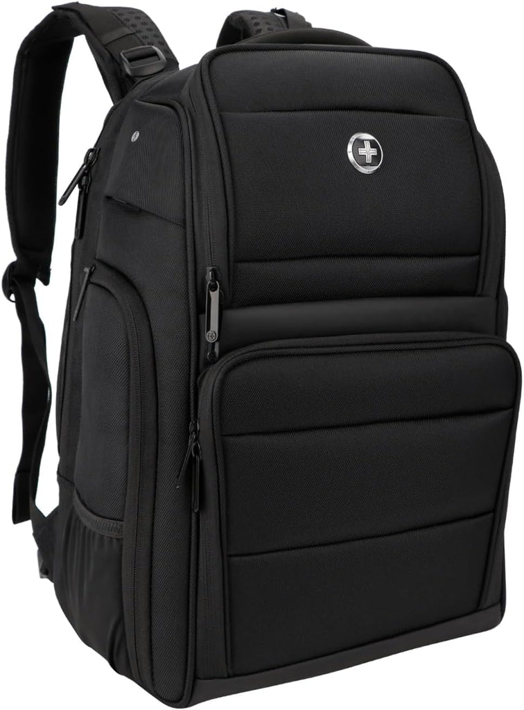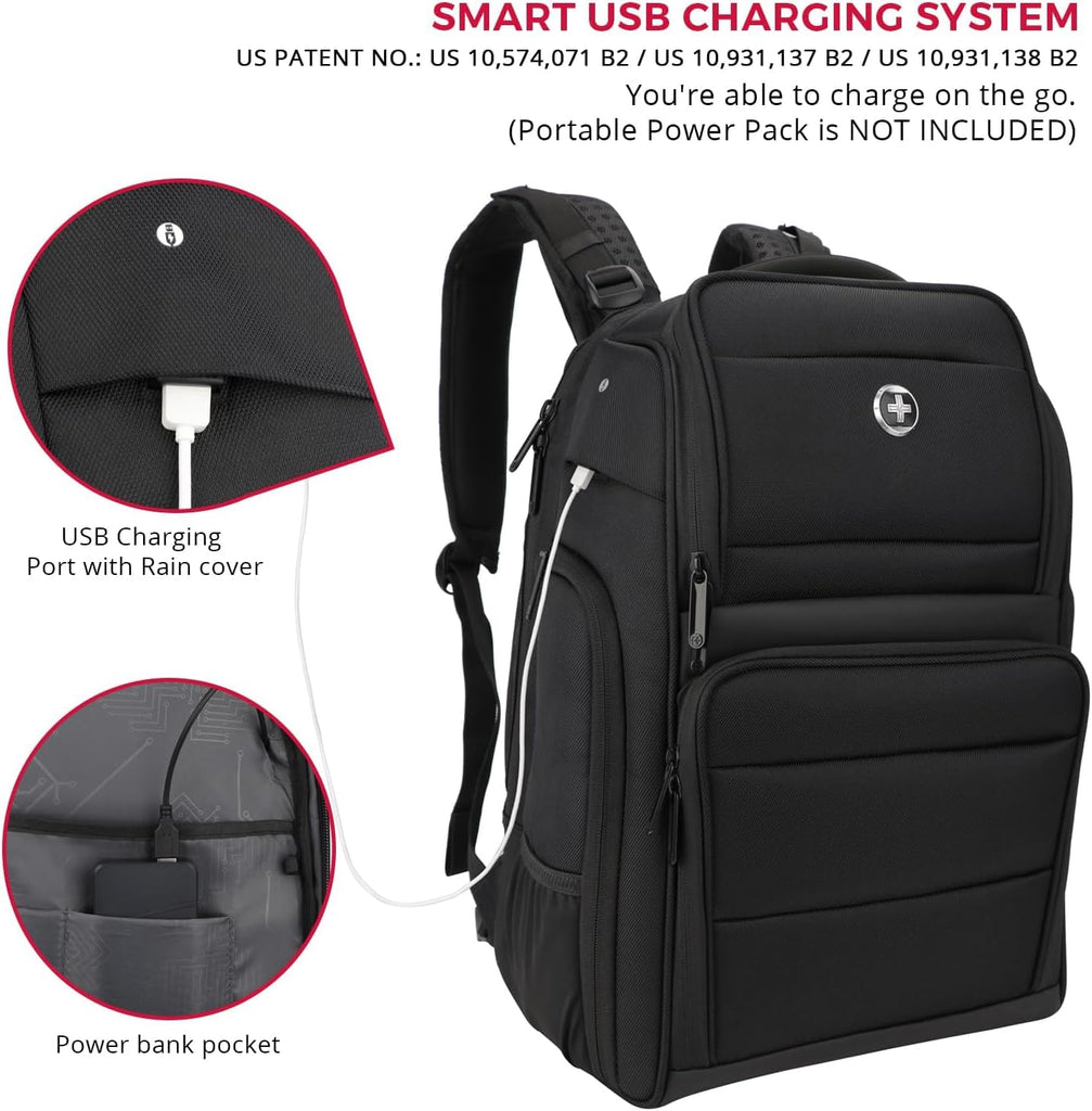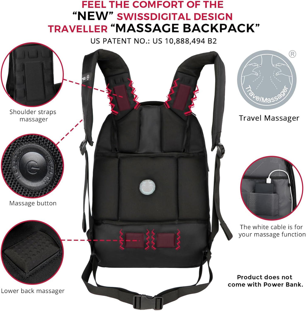 Swissdigital Design Fits 15.6 inch Large Laptop Backpack for Men and Women, Computer Bag with USB Charging Port and Vibrating Massager for Business/Travel/Commute Daily, Black SD1002M-01