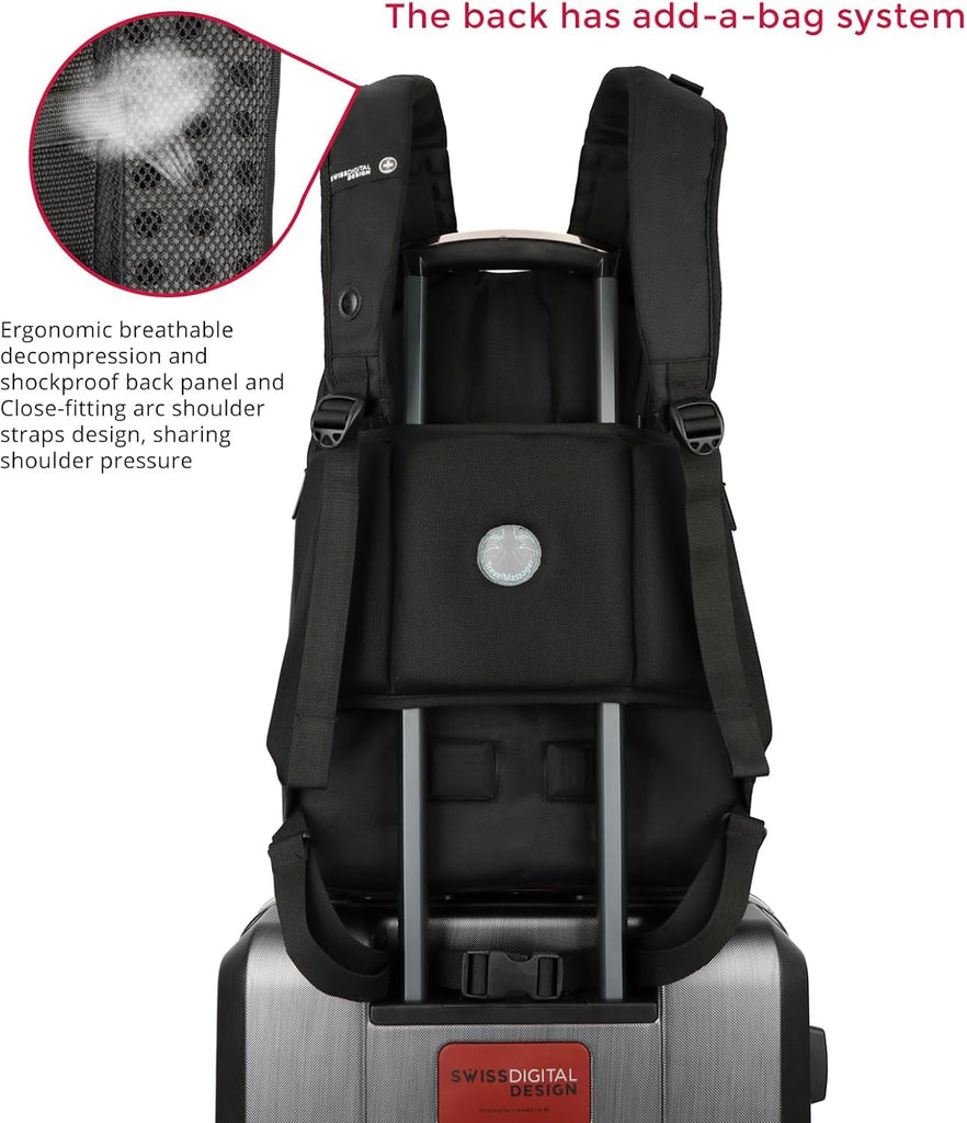 - Travel-Friendly: Swissdigital Design backpacks are designed for the new “Commuter Urban Traveler“,This computer bag serves multiple purposes as a everyday backpack, business laptop bag, college backpack, gym bag, or weekend backpack. Perfect for daily commutes, business trips, and airline travel, This carry on backpack for airplanes features RFID protection and dedicated laptop compartment works equally well for men and women in all travel and professional work.