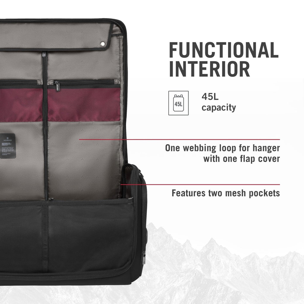Victorinox Crosslight Garment Bag - Travel Bag for Hanging Clothes - Includes Mesh Pockets & Hanger Loop - Premium Travel Essentials - Black