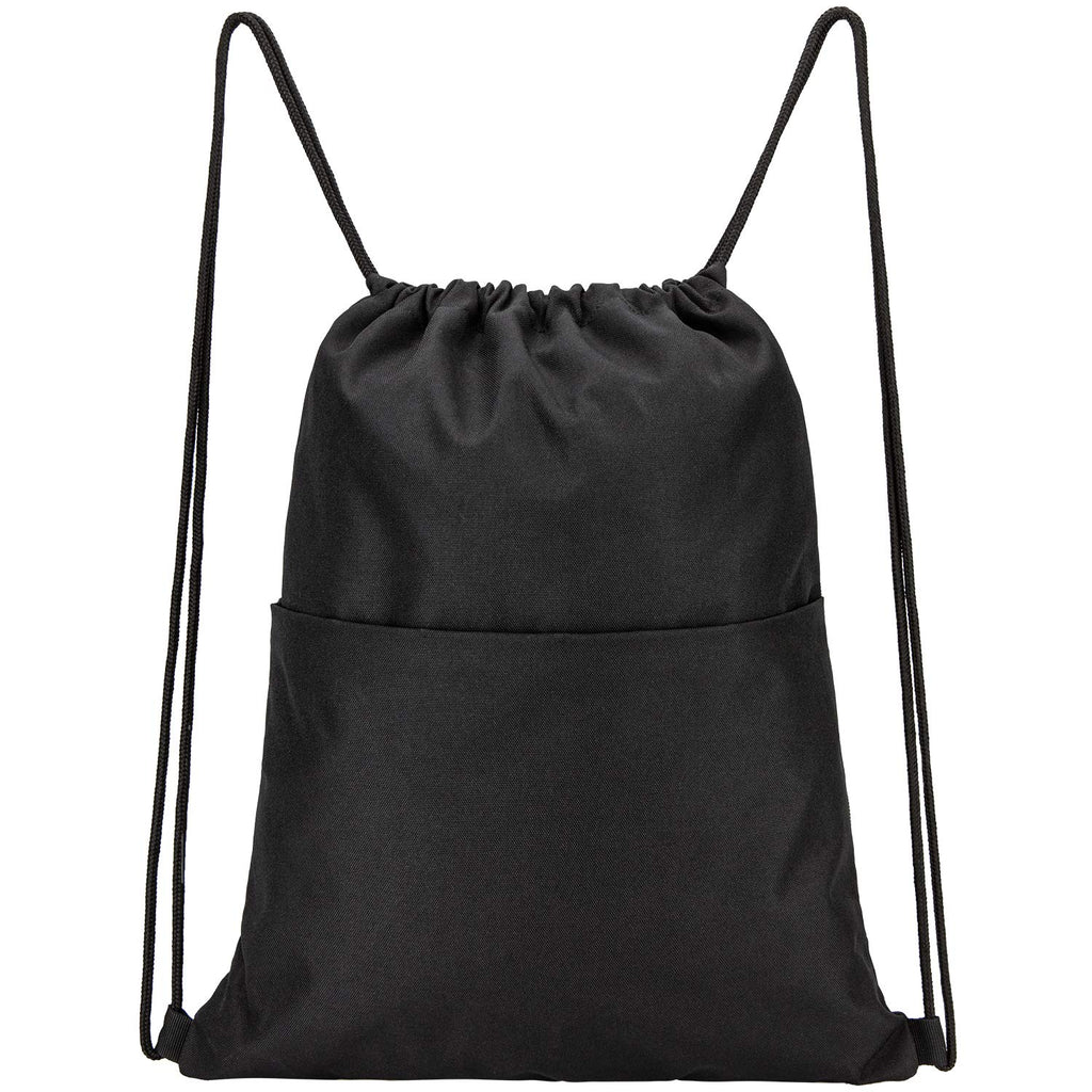 Vorspack Drawstring Backpack Water Resistant String Bag Sports Sackpack Gym Sack with Side Pocket for Men Women - Black
