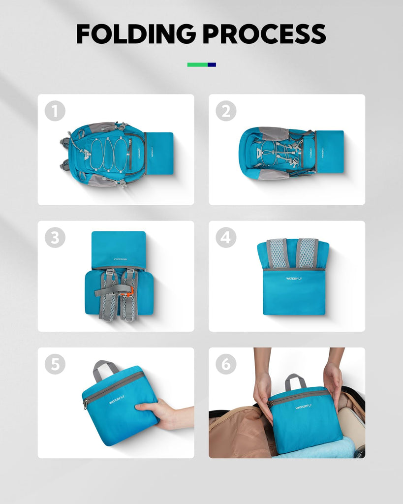 - Lightweight And Foldable Design: This WATERFLY small lightweight foldable backpack weighs only 0.68 lb and offers a 15L capacity. Full dimensions: 16.54 x 11.02 x 4.72 in; folds down to a compact 7.87 x 6.3 x 2.16 in for easy storage in pockets, luggage, and handbags. It also fits most airline carry-on rules